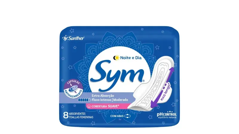 Absorvente Sym Noite e Dia Suave Com Abas 8 Unidades