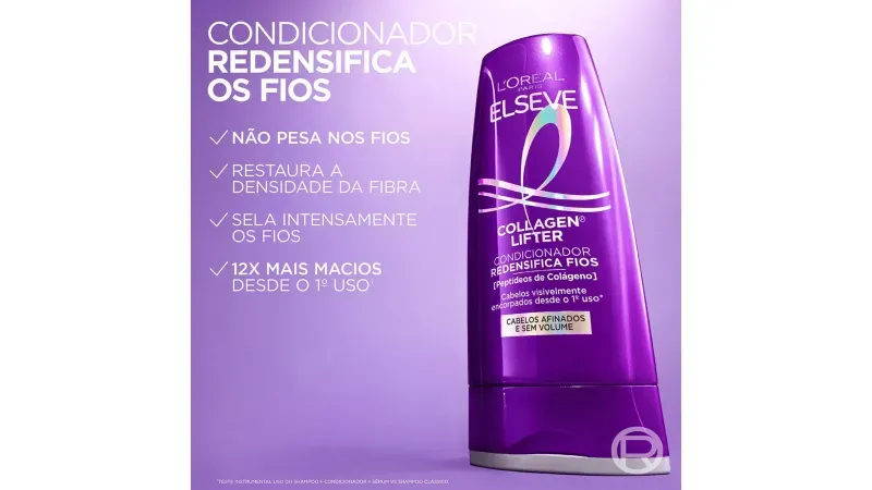 Condicionador L'Oréal Paris Elseve Collagen Lifter 400ml O Condicionador L'Oréal Paris Elseve Collagen Lifter foi desenvolvido especialmente para cabelos que precisam de mais corpo e volume. Com tecnologia exclusiva de colágeno, este condicionador ajuda a preencher a fibra capilar, deixando os fios mais encorpados desde a primeira aplicação. Para que serve Este condicionador é ideal para quem tem cabelos finos, sem volume ou que perderam densidade com o tempo. Sua fórmula trabalha para dar mais corpo aos fios, deixando-os visivelmente mais volumosos e com aspecto saudável.
